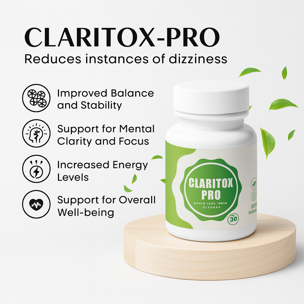 Claritox Pro is a natural supplement designed to help people suffering from dizziness, imbalance, and frequent vertigo. Crafted with a precise blend of minerals, vitamins, and plant extracts, it aims to restore body balance, improve circulation, and support brain health.