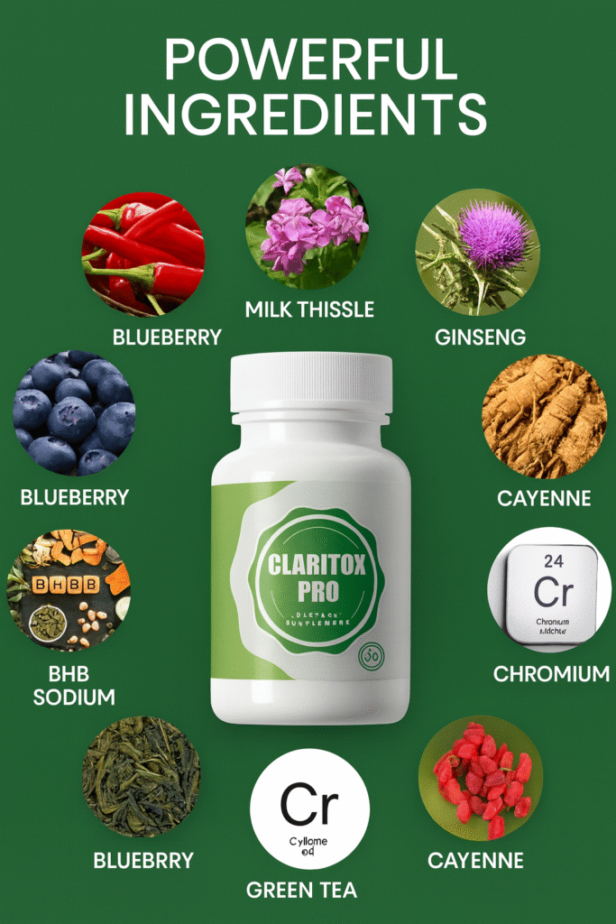 Claritox Pro was formulated with complete focus on safety and quality. Its blend contains only natural, clinically tested ingredients — with no artificial additives or substances that cause dependency. Every batch is produced in FDA-approved facilities under strict GMP (Good Manufacturing Practices) standards, ensuring purity and consistency in every capsule.